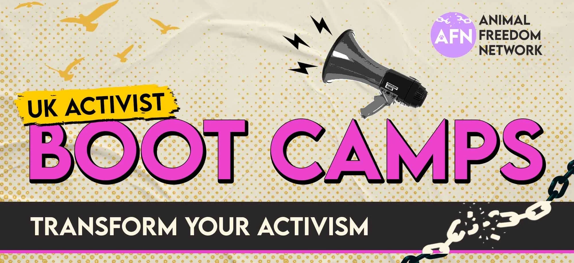 The Animal Freedom Network enables community-led groups to communicate, collaborate, and campaign on a national scale. We provide free trainings, resources, and events to help the movement become an unstoppable force for change.